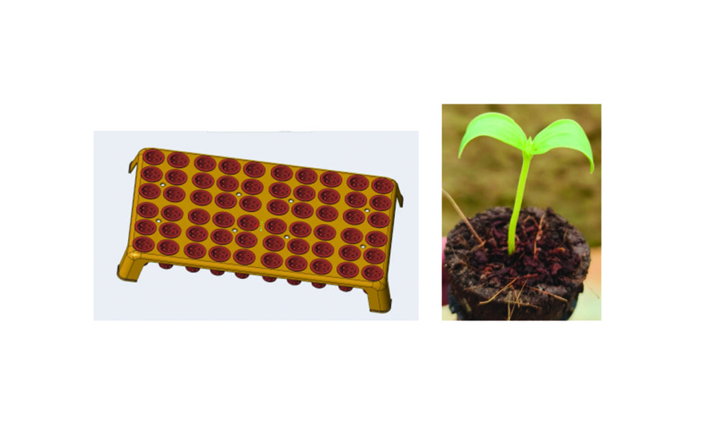 Our innovative product "Biodegradable Organic Nursery Nutrient Rich Cups and reusable Trays" which will help plants at its first stage of growth to grow stronger and healthier without chemical fertilizers or single-use plastic trays present in the market. We have simplified the nursery process, making it more efficient and 100% sustainable.